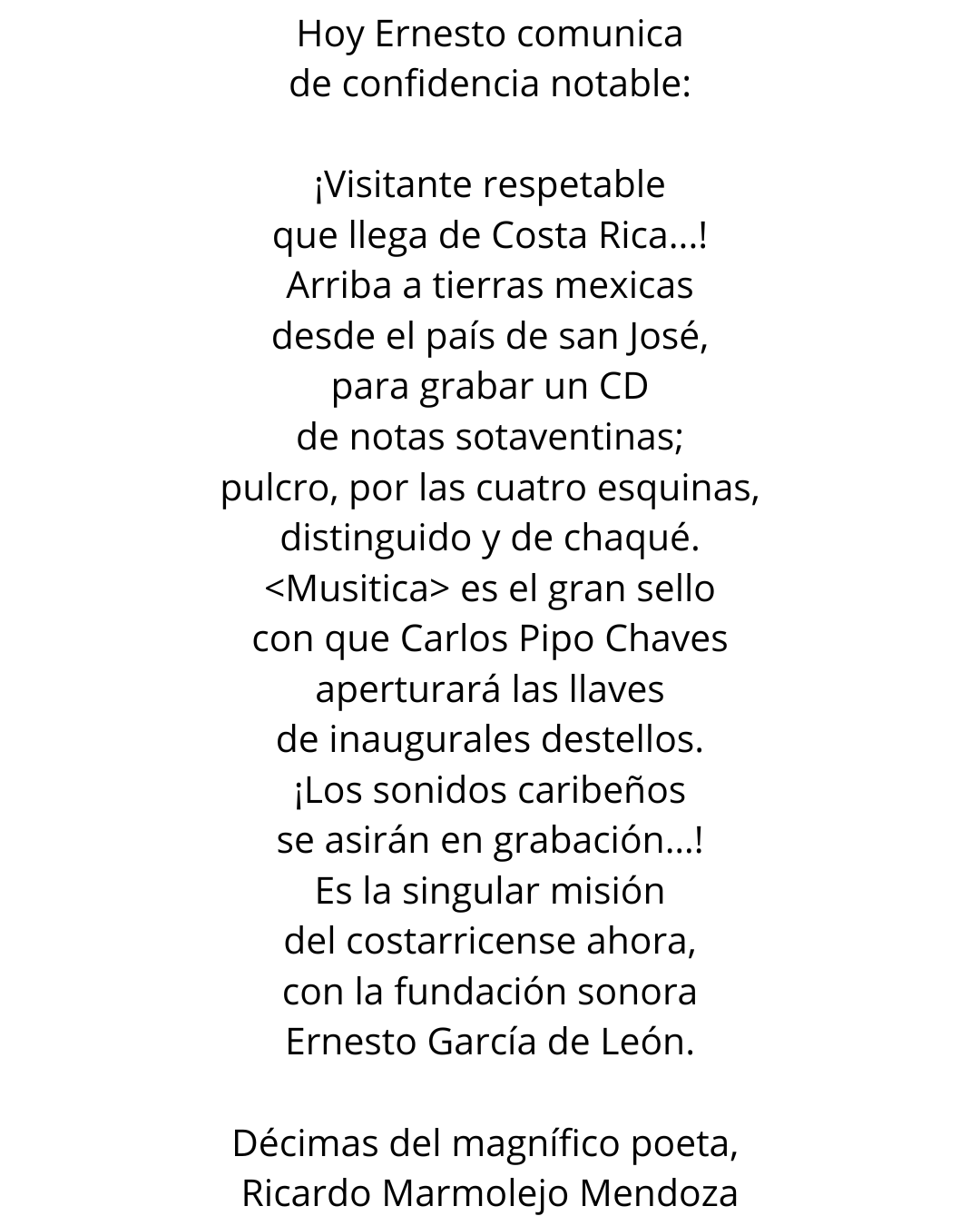 Magníficas décimas dedicadas a la gran clavecinista, artista y músico de alto y excelente nivel, Mónica Begovich. Yo muy agradecido por las maravillosas interpretaciones que hace de mi música ¡¡¡Gracias, Mónica!!!